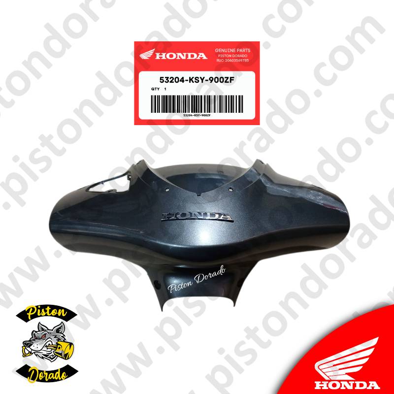 La cubierta de manubrio delantero gris Honda está diseñada para el modelo ELITE 125, código de color NHA21M, fabricado desde el año 2012. Este repuesto original protege y cubre el área frontal del manubrio, manteniendo los componentes internos seguros contra el polvo, la suciedad y la humedad, además de aportar un acabado estético original y elegante.