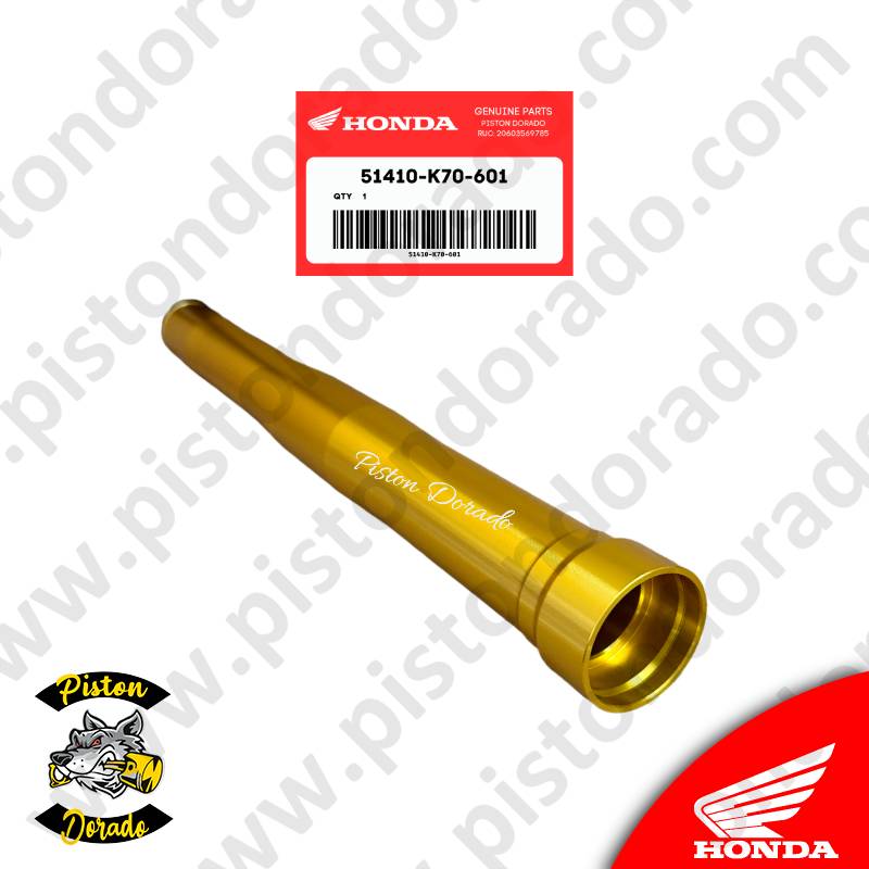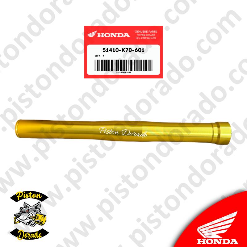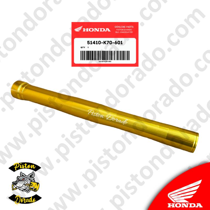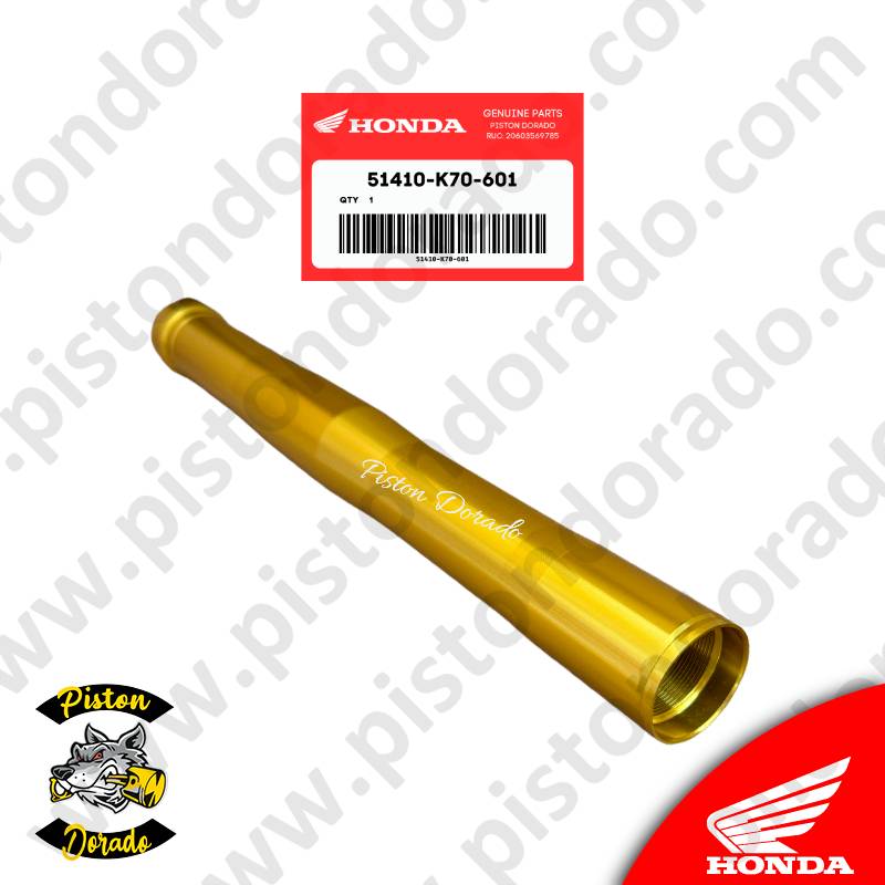 Este tubo de barra delantero dorado es un repuesto original de Honda, diseñado para mantener la calidad y rendimiento de la suspensión delantera de la motocicleta CB190R.